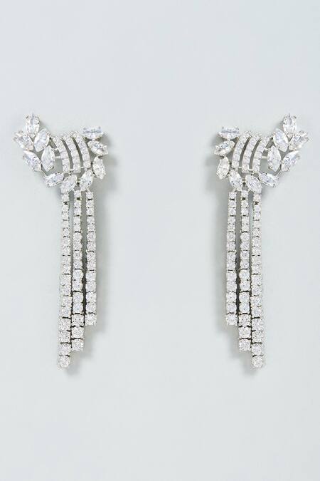Buy_Prihan Luxury Jewelry_Silver Plated Imitation Diamonds Danglers With Rhodium Plating_at_Aza_Fashions