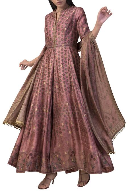Pink Printed Anarkali With Dupatta