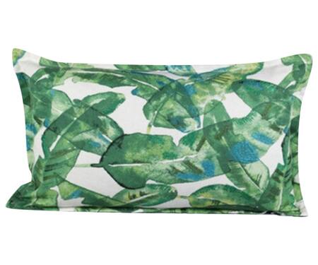 White & green rectangle cushion cover with all-over leaf motif prints..