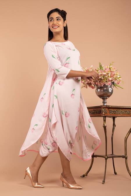 Buy_Pasha India_Pink Polycrepe Floral Boat Neck Printed Dhoti Jumpsuit With Cape_at_Aza_Fashions