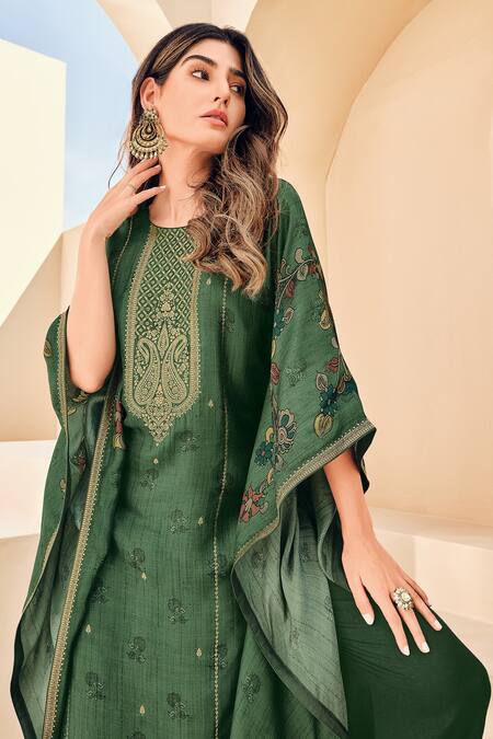 Buy_Label Varsha_Green Printed Kaftan And Pant Set_at_Aza_Fashions
