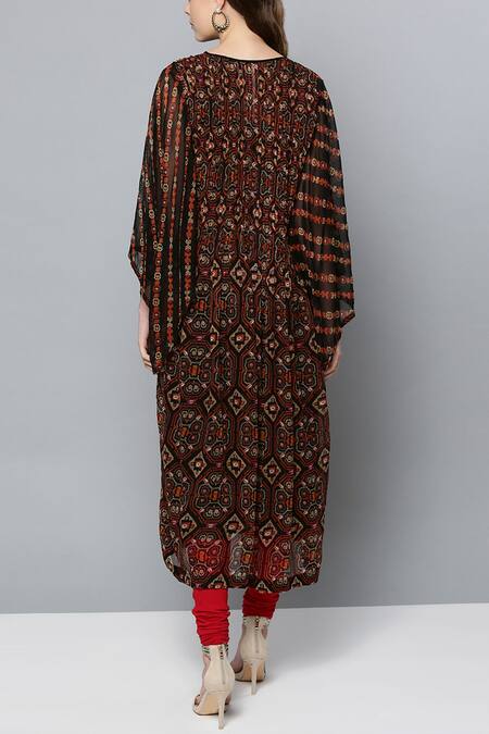 Buy_Ritu Kumar_Black Viscose Round Printed Kaftan Tunic_at_Aza_Fashions