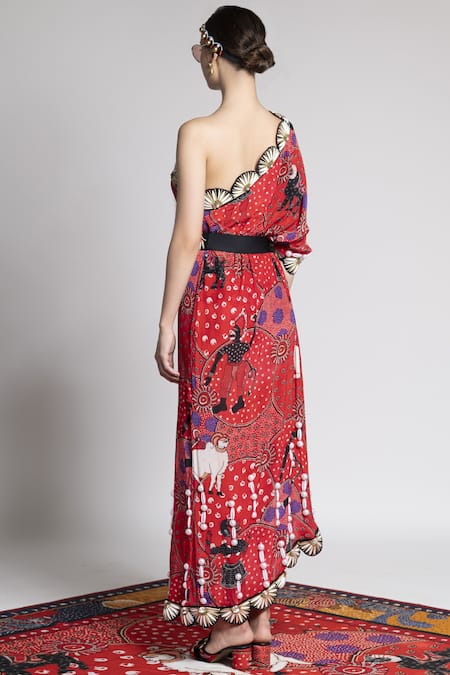 Buy_Shivan & Narresh_Red Crepe Printed Kaftan_at_Aza_Fashions