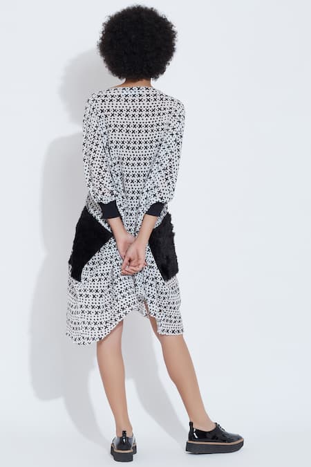 White short kaftan with all over geometric style print.
