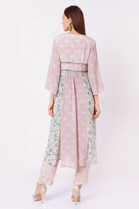 Buy_SAKSHI GIRRI_Green Crepe V Neck Printed Kurta And Pant Set_at_Aza_Fashions