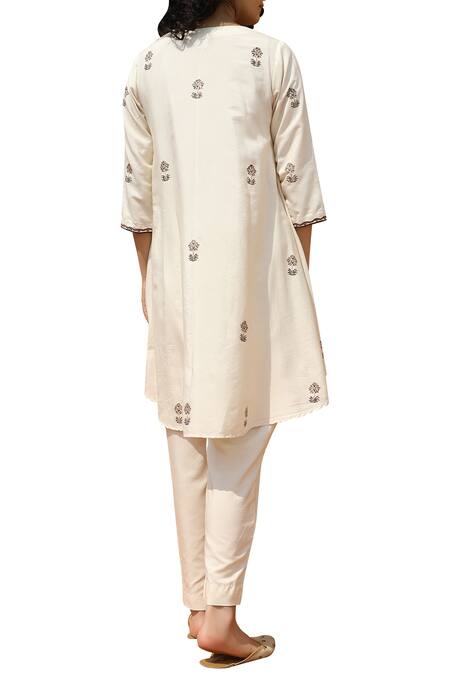 Buy_Bohame_White Cotton Silk Round Printed Kurta Set_at_Aza_Fashions