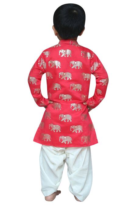 Buy_Kirti Agarwal - Pret N Couture_Red Linen Satin Printed Kurta Set _at_Aza_Fashions