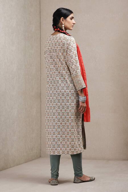 Buy_Ritu Kumar_Beige Kurta  Leggings Viscose Dupatta Voile Round Printed Set_Online_at_Aza_Fashions
