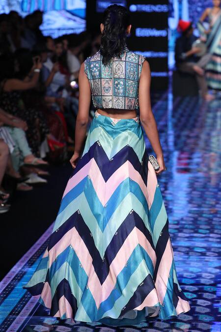 Multi-colored lehenga in a chevron pattern & placement sequin work. Comes with textured blouse.