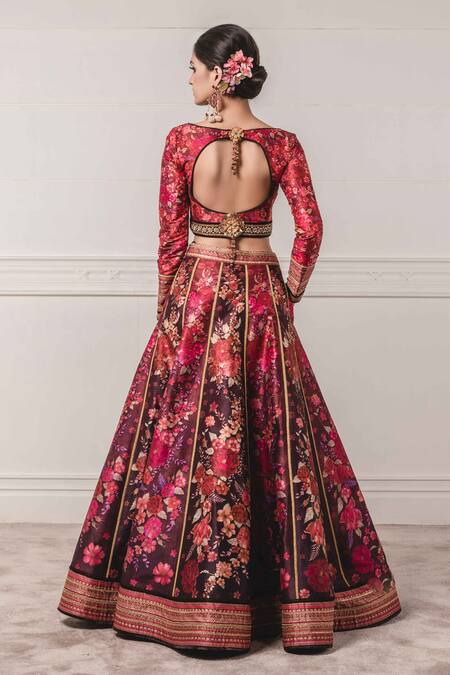 Buy_Tarun Tahiliani_Purple Tafetta Mandarin Collar Printed Lehenga Set_at_Aza_Fashions