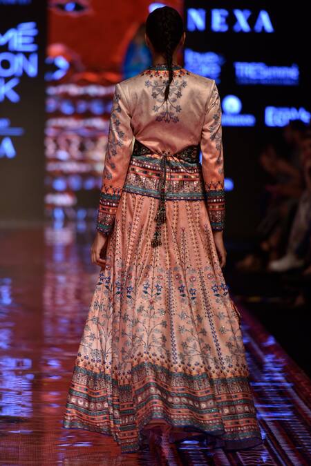 Printed,Embellished, Floor length, Flared silhouette, Note:, Jacket, inner blouse & waist belt worn by the model is not for sale