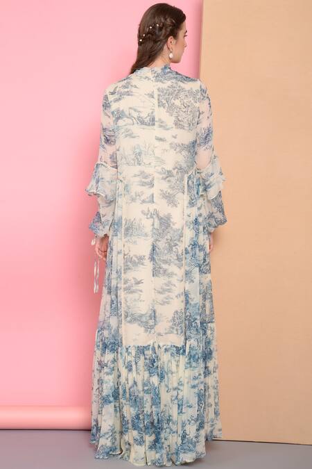 Buy_Sahil Kochhar_White Bemberg Chiffon Round Printed Maxi Dress _Online_at_Aza_Fashions