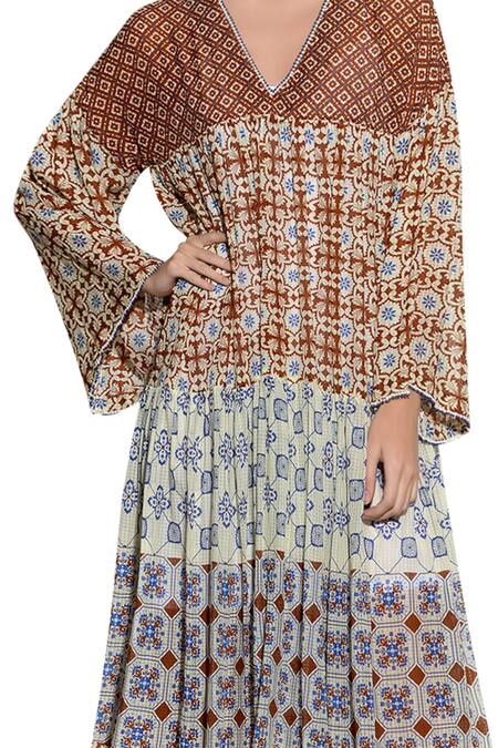 Shop_Umbar_Multi Color Printed Midi Dress_at_Aza_Fashions