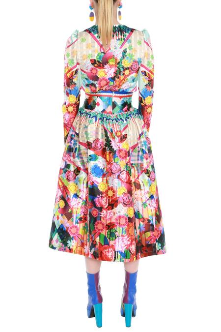 Multicolor high waist flared skirt with all over abstract floral print motif.