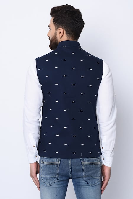 Buy_Spring Break_Blue 100% Cotton Printed Nehru Jacket _Online_at_Aza_Fashions