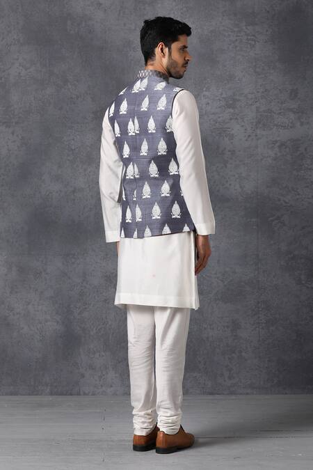 Buy_Ankit V Kapoor_Grey Raw Silk Printed Nehru Jacket_Online_at_Aza_Fashions
