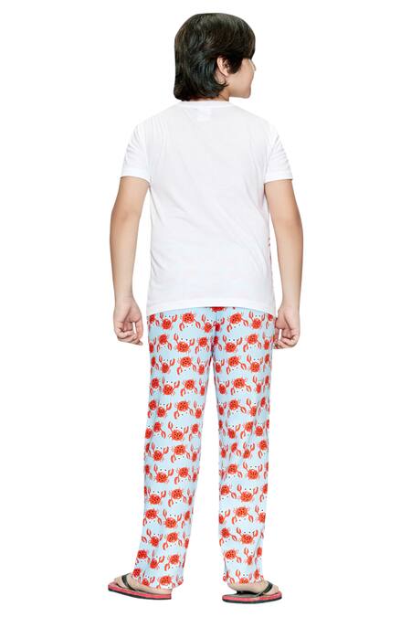White T-shirt with crab printed motif. Comes with blue printed pyjama.
