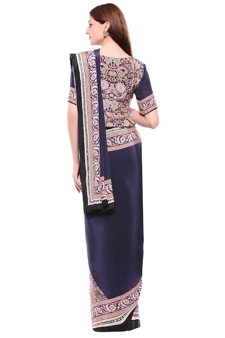 Buy_Soup By Sougat Paul_Blue Crepe Madhubani Round Neck Pre-draped Saree With Blouse _Online_at_Aza_Fashions