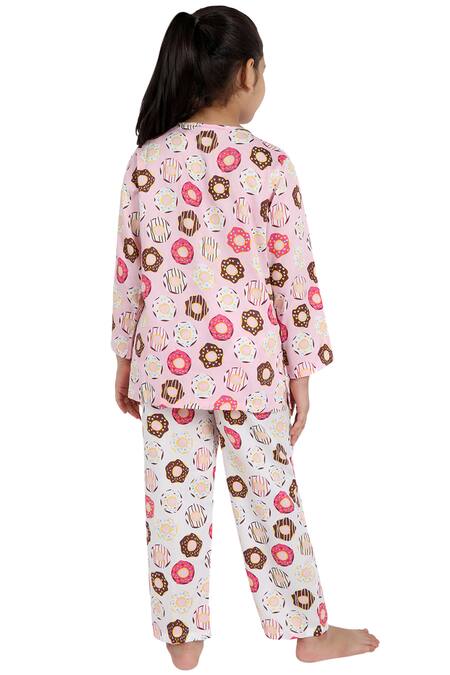 Pink shirt with all over donut printed motifs. Comes with pyjama.