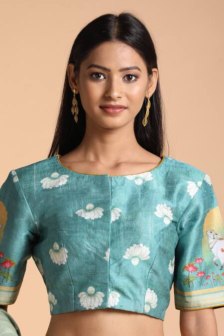 Buy_Label Pratham_Blue Printed Raw Silk Blouse_at_Aza_Fashions