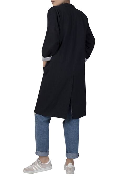 Black Cotton Printed Open Reversible Jacket