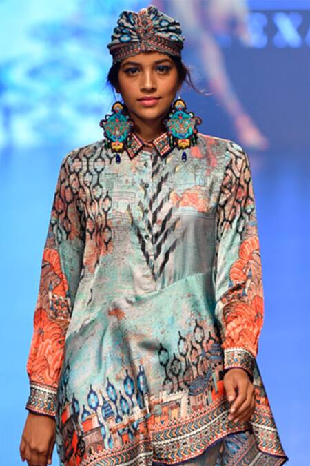Buy_Rajdeep Ranawat_Blue Spread Collar Printed Shirt_at_Aza_Fashions