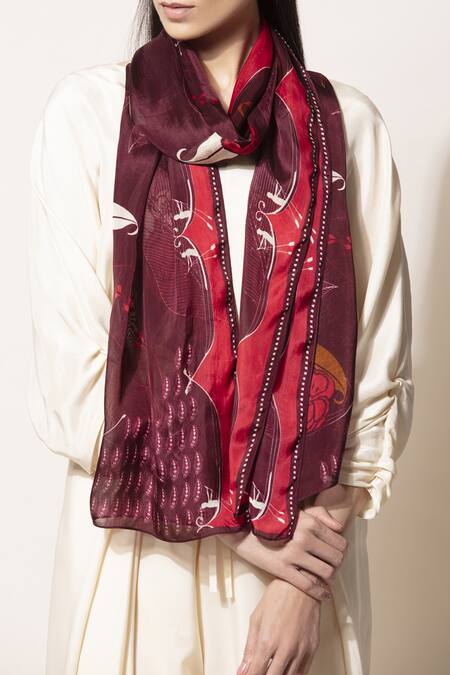 Wine Printed Silk Stole
