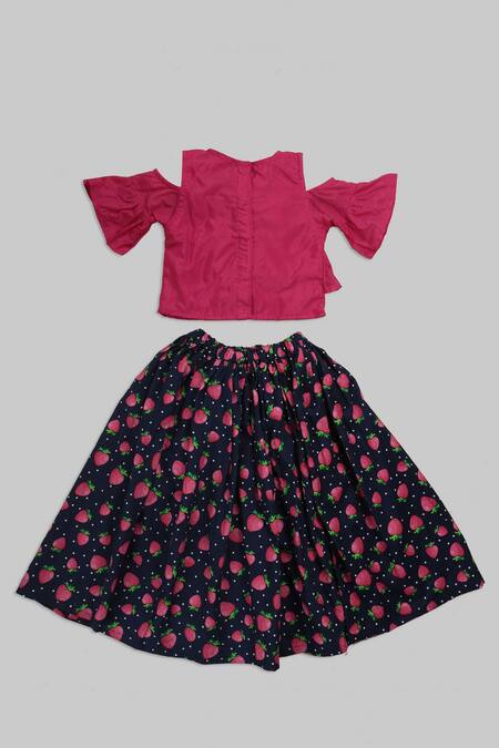 Cold shoulder detail on the top, Overlap design of the top, Strawberry motif print on the skirt
