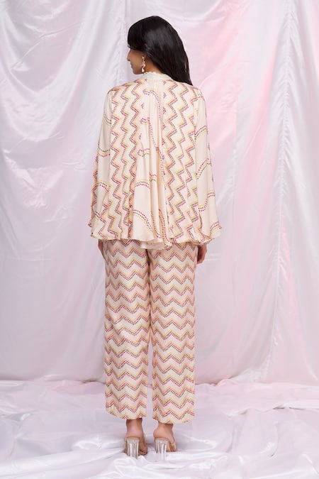 Buy_Punit Balana_Pink Silk Satin Geometric Band Collar Printed Tent Tunic _at_Aza_Fashions