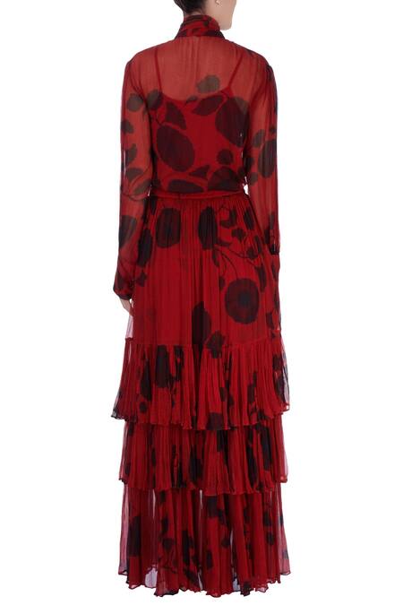 Red bow tie-up blouse featuring all over print. Pair with high waist skirts for best look. Come with inner