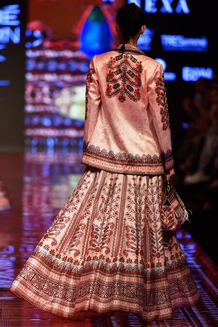 Peach jacket with all-over printed motifs & sequin embellishment.