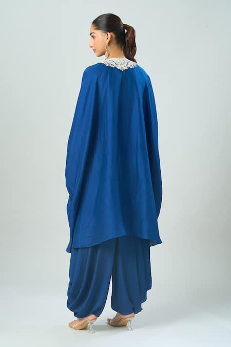 Blue Embroidery Round Neck Lampi Kaftan And Draped Pant