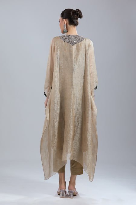 Gold Beads Round Neck Yoke Embroidered Kaftan And Pant Set