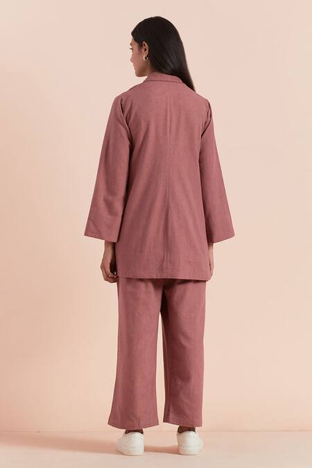 Buy_Priya Chaudhary_Pink Twill, Cotton Collared Onion Top And Pant Set_Online_at_Aza_Fashions