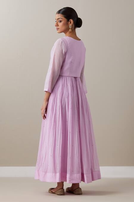 Pink Chanderi Sequins, Zari Round Neck Embroidered Anarkali And Koti Jacket Set