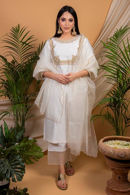 White sheer dupatta with scallop edged hem.