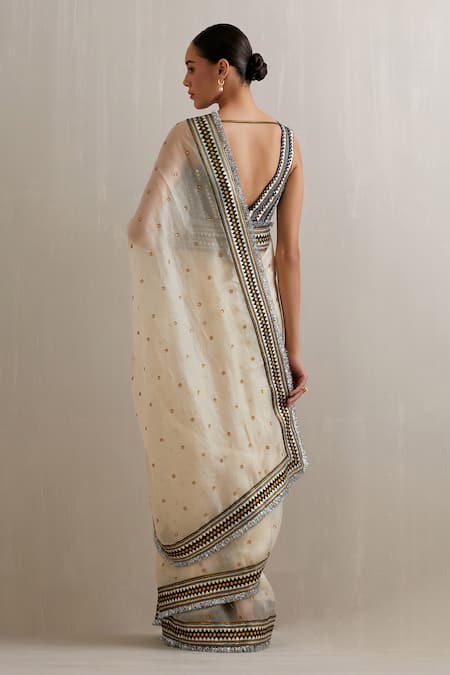 Ivory Silk Organza, Polyester Gota Colorblock Embroidered Saree With Blouse