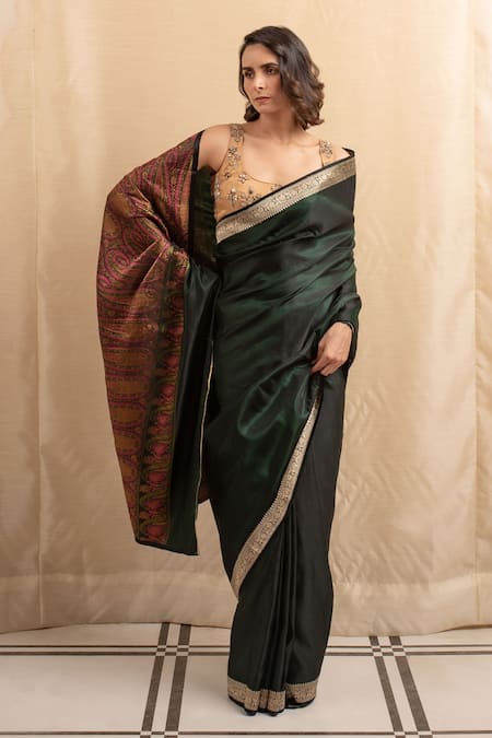 Green Silk Embroidery Deep Banarasi Paisley Saree