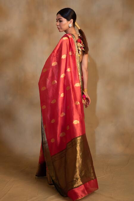 Red Silk, Chanderi Embroidery Deepa Floral Saree With Unstitched Blouse