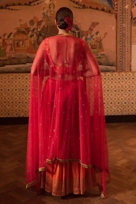 Buy_Priyanka Raajiv_Orange Silk, Cotton, Dupatta Tulle Mukaish And Kiran Garima Ombre Lehenga Set_Online_at_Aza_Fashions