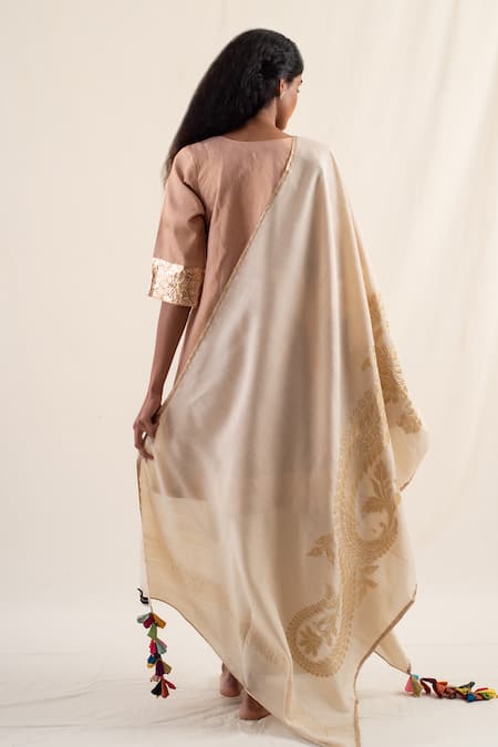 Buy_Priyanka Raajiv_Ivory Silk, Brocade Tassels Hulchul Floral Handwoven Dupatta
