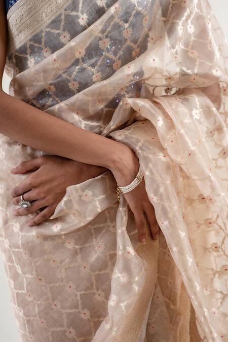 Shop_Priyanka Raajiv_Beige Silk Embroidery Ima Floral Pattern Saree With Unstitched Blouse Piece _Online_at_Aza_Fashions