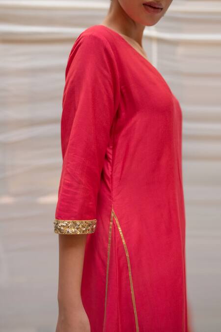 Coral Cotton Silk Sequin Embroidery Round Ushna Straight Kurta And Pant