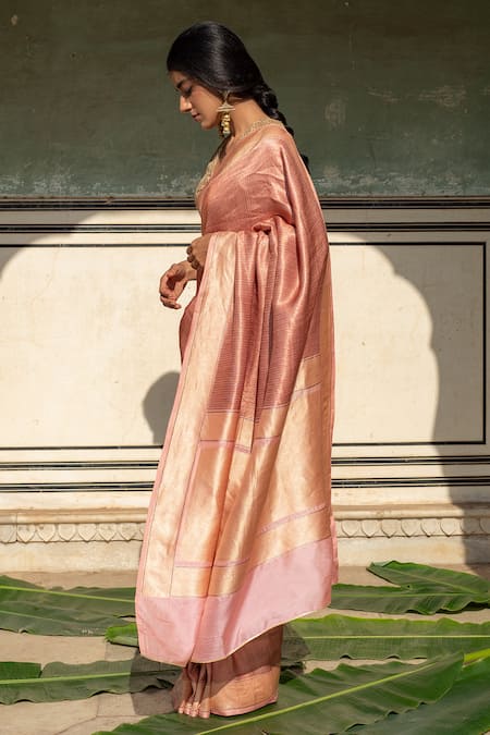 Buy_Priyanka Raajiv_Maroon Silk Zuri Banarasi Woven Saree With Running Blouse_Online_at_Aza_Fashions