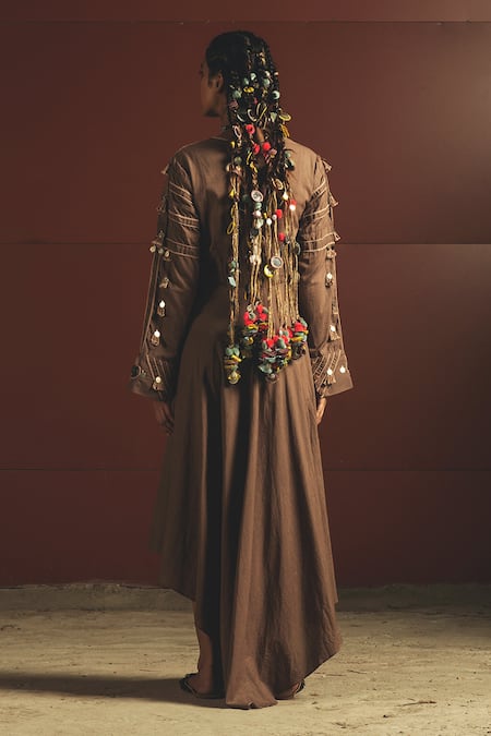 Brown Cotton, Mul Round Embroidered Maxi Dress