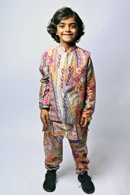 Multi Color Silk Multicolor African Print Bundi And Kurta Set