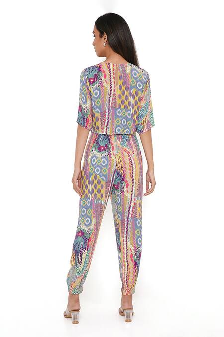Lime green top with all-over African print and round neckline. Comes with co-ordinating joggers.