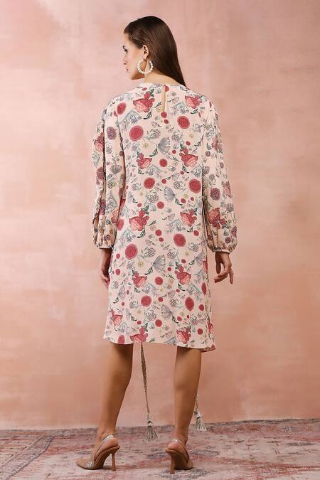 Pink Crepe Printed Gulbagh Round Asymmetric Top