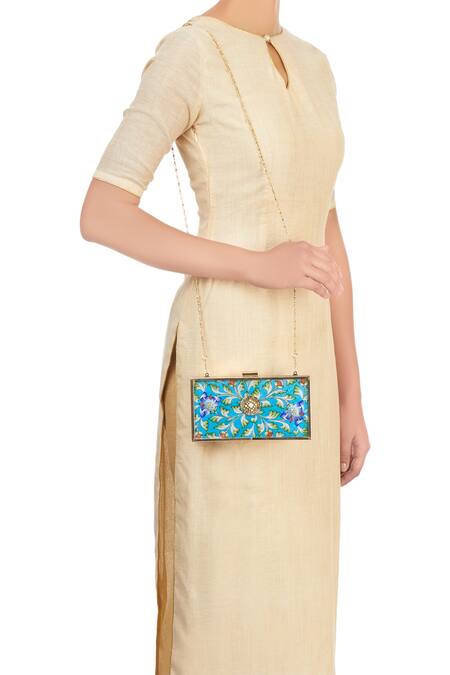 Buy_Puneet Gupta_Blue Abstract Floral Print Clutch_at_Aza_Fashions