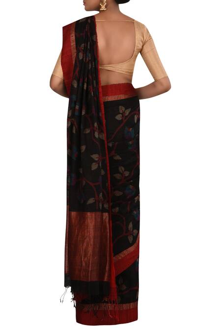 Buy_Adara Khan_Black Pure Matka Silk Saree With Running Blouse_Online_at_Aza_Fashions